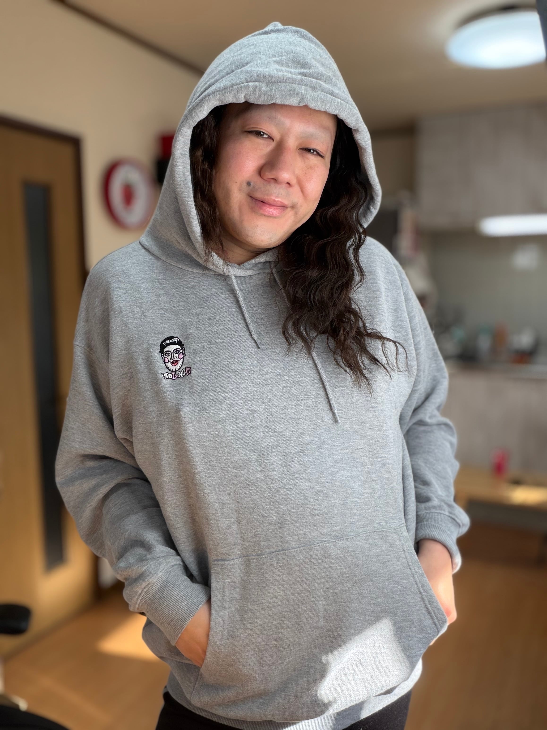 フード付きタイプのパーカーです。